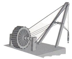 à tambour actionné par des esclaves introduits à l'intérieur et le "polypaston"