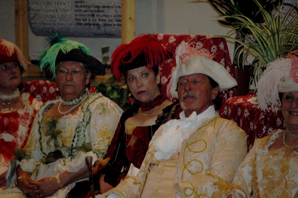 Samedi soir, buffet de Monsieur le Marquis de Nogaret. Au menu :Apéritif - foie gras sur toast, terrine de chevreuil, la terrine du Marquis (lapereau au thym), ballottine de canard, ballottine de faisan, saumon tranché, cuissot de porcelet aux herbes, tian de petits légumes, "Fourmages" dans le goût du 18ème, les desserts de la table du Marquis (délices de Nogaret),vin des dieux - petits pains de la Reine. Tout ceci préparé par des artisans de Calvisson.