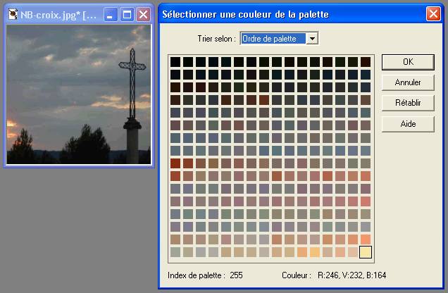 Exemple d'une image en 256 couleurs avec sa palette